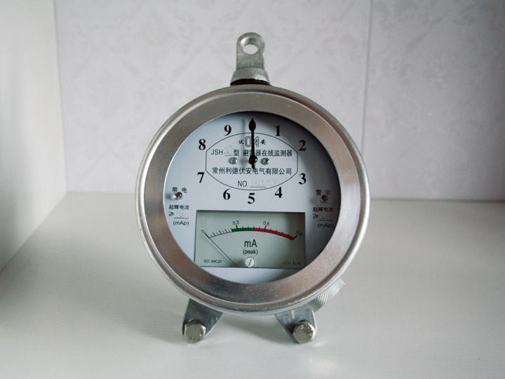2.檢查監(jiān)測(cè)器中的動(dòng)作計(jì)數(shù)器時(shí),^簡(jiǎn)單的方法是用110-250V交流電,將監(jiān)測(cè)器放在絕緣物上,用交流電一端碰在外殼上,另一端短時(shí)碰一下瓷套上的接線端,此時(shí)計(jì)數(shù)器指針會(huì)動(dòng)一下,碰一下動(dòng)一下。若外殼已接地,則需分清交流電的火、地線,將地線接外殼,火線碰接線端。另一種方法是用1 000伏及以上絕緣搖表向微法級(jí)電容器充電,然后將電容器向監(jiān)測(cè)器放電。每放一次電,監(jiān)測(cè)器中的計(jì)數(shù)指針應(yīng)跳動(dòng)一次,毫安表指針大幅度擺動(dòng)一下后,恢復(fù)到原先位置。