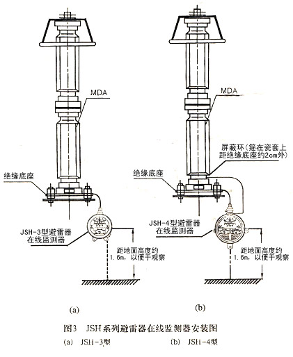 ??JSH-4型監(jiān)測(cè)器備有不銹鋼屏蔽環(huán)及絕緣引下線,屏蔽環(huán)安裝在瓷套底座上方約3-4cm處,通過(guò)配備的絕緣引線,將屏蔽環(huán)與監(jiān)測(cè)器瓷套中部的金屬環(huán)牢固連接,絕緣引線可用絕緣帶固定在避雷器引下線上,以免風(fēng)吹時(shí)擺動(dòng)。