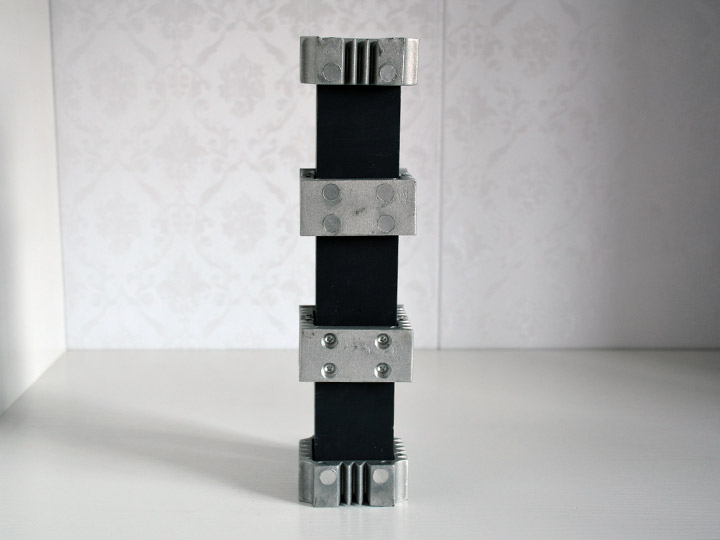??L II型電阻器沒有瓷套,非線性電阻體是以SIC為主要原料經(jīng)高溫氫氣爐燒成,電阻體之間用銅材或壓鑄鋁連接,體積小,容量大,機械強度高。